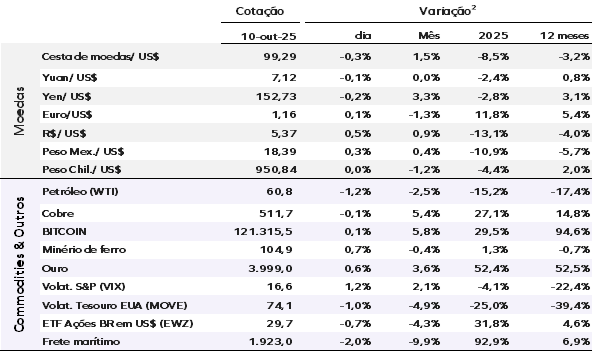 Sobre o câmbio, ele afirmou que o comportamento recente reflete uma correção do movimento atípico observado em 2024.
