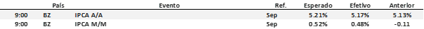 Brasil: A inflação medida pelo IPCA avançou 0,48% em setembro, abaixo das expectativas do mercado (0,52%) e da nossa projeção (0,55%). O resultado reflete uma dinâmica mais benigna dos núcleos, com desaceleração nos preços de serviços e bens.