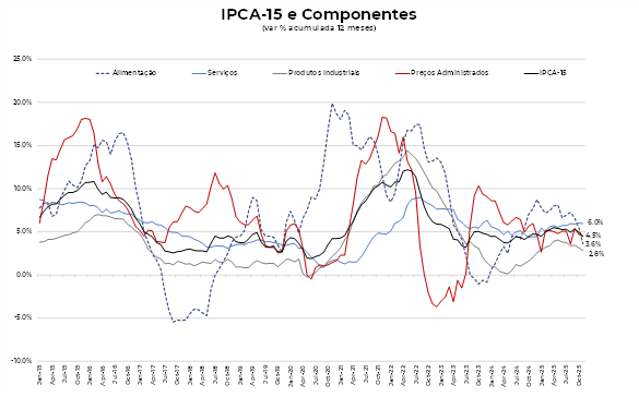 O IPCA-15 de novembro indica que a inflação segue com comportamento benigno. O resultado não altera a tendência de desinflação e reforçando a expectativa que a inflação deverá terminar o ano no teto da meta.